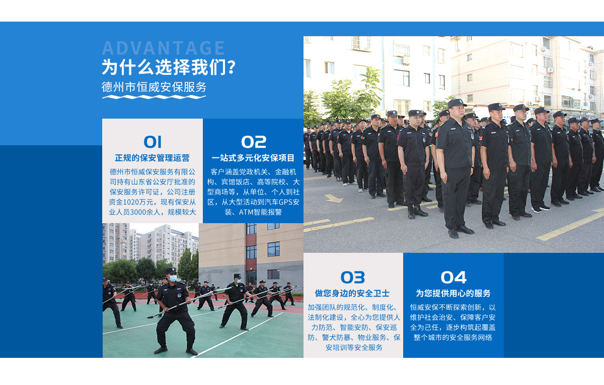 - 德州市恒威安保服務(wù)有限公司,注冊(cè)資金1020萬(wàn)元。是經(jīng)山東省公安廳批準(zhǔn)、德州市工商管理局登記注冊(cè)、具有獨(dú)立法人資格的專(zhuān)業(yè)保安服務(wù)公司,下設(shè)10個(gè)職能科室和業(yè)務(wù)部...